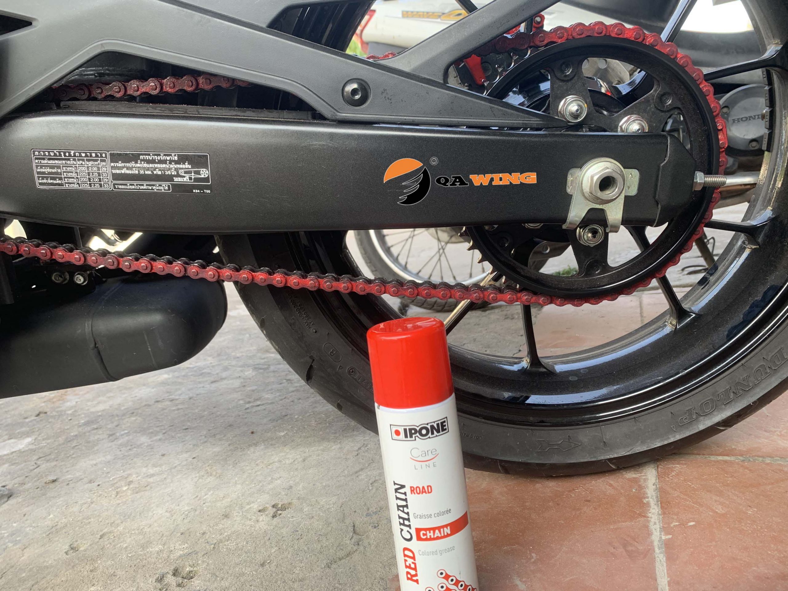 IPONE RED CHAIN là loại mỡ dưỡng sên, nhuộm sên màu chịu nước.