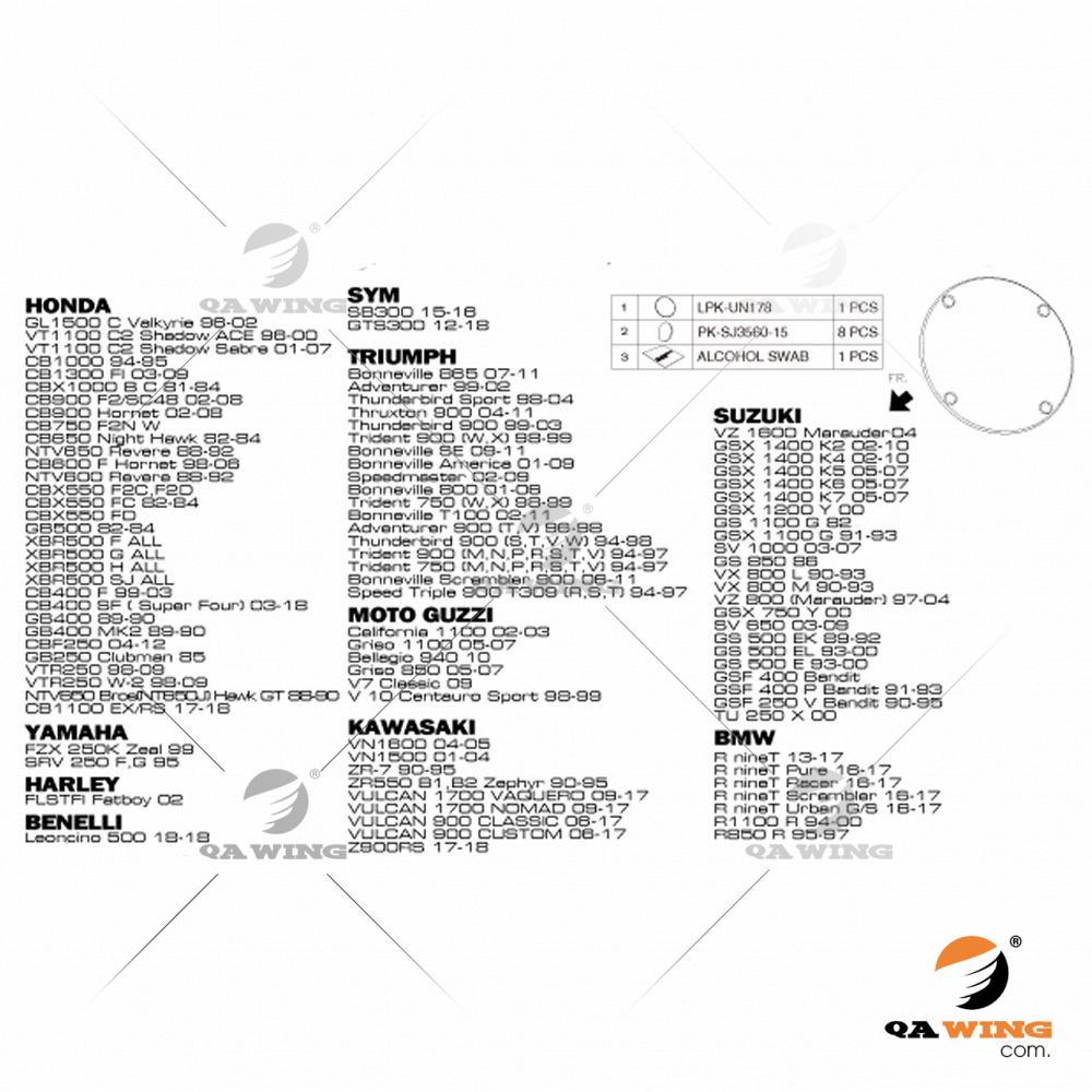 Ngoài ra tại QAWING có đầy đủ phụ tùng, đồ chơi, phụ kiện cho các dòng xe: 302R, 502C, BJ600, BN302, BN302S, BN600, IMPERIALE 400, LEONCINO 500, TNT125, TRK251, TRK502, TRK502X, 1200S, C400GT, F650, F700, F800, G310, G310R / G310GS, HP4, K1200, K1300, R NINE T, R1100, R1150, R1200, R1200GS, R1250, R850, S1000R, S1000RR, S1000XR, 848 EVO / 1098 / 1198, DIAVEL, HYPERMOTARD, HYPERSTRADA, MONSTER 1200S, MONSTER 696 / 795 / 796 / 1100, MONSTER 821, MULTISTRADA, PANIGALE, SCRAMBLER, STREETFIGHTER, 1200 CUSTOM, FAT BOB, FORTY EIGHT (48), HERITAGE CLASSIC, IRON 1200, IRON 883, ROAD KING, ROADSTER, SEVENTY TWO (72), STREET 750, STREET GLIDE, SUPERLOW, ADV 150, AX-1, BAJA, BROS400, CB1000R, CB1100, CB1300, CB150R, CB160R, CB190, CB190R, CB190TR, CB250R, CB300F, CB300R, CB400, CB500F, CB500R, CB500X, CB650F, CB650R, CB750, CBF125R, CBF190, CBF190TR, CBR1000RR, CBR150R, CBR250R, CBR300R, CBR400RR, CBR500R, CBR600RR, CBR650F, CBR650R, CBR900RR, CG125, CR125, CR250, CRF150, CRF250, CRF450, CRM250, CUSTOM 125 (CM125), DREAM, FORTUNE 125, FUTURE, FUTURE 125FI, GOLDWING, HORNET 250, HORNET 600, HORNET 919, JADE 250, MAGNA 250, MAGNA 750, MASTER 125, MSX125, NC700, NC750, REBEL 125, REBEL 250, REBEL 300, REBEL 500, RR150, SH300, SHADOW 150, SHADOW 400, SHADOW 750, SILVER WING, STEED 400, STEED 600, VFR400, VFR750, VFR800, VRX400, VT1300, VTR250, VTX1300, VTX1800, WINNER, XL250, XR125, XR150, XR250, XR400, D-TRACKER 250, ER6F, ER6N, GTR1400, KDX200, KDX250, KLE 650, KLX125, KLX250, KLX300, KLX400, KX125, NINJA 250, NINJA 300, NINJA 400, NINJA 650, VERSYS 100, VERSYS 1000, VERSYS 300, VERSYS 650, VULCAN 400, VULCAN 800, VULCAN 900, VULCAN S 650, W175, Z1000, Z1000SX, Z400, Z650, Z750, Z800, Z900, Z900RS, ZR250, ZRX400, ZX10R, ZX12R, ZX14R, ZX6R, ZXR400, ZZR1100, ZZR1200, ZZR1400, ZZR400, ZZR600, DUKE 125, DUKE 1290, DUKE 200, DUKE 250, DUKE 390, DUKE 690, DUKE 790, RC 125, RC 200, RC 390, AN, BANDIT 150, BKING 1300, DL650, DR200, DRZ250, DRZ400, EN125, EN150-A, FX125, GN125, GN250, GSX R150, GSX S150, GSX-R1000, GSX-R1300, GSX-R600, GSX-R750, GZ125HS, GZ150-A, HJ125, M109R, RAIDER, SATRIA, SFV650, SR400, SV1000, SV650, SV650S, TL1000, TL1000R, TSR125, TSR200, VANVAN200, VZR1800, BONNEVILLE BOBBER, BONNEVILLE T100, BONNEVILLE T120, STREET SCRAMBLER, STREET TRIPLE, STREET TWIN, TIGER 1050, TIGER 800, TIGER 900, TRIDENT 660, DT200, DT230, EXCITER 135, EXCITER 150, EXCITER 155, FZ-1, FZ-6, FZ-8, FZ150i, FZR250, MT-03, MT-07, MT-09, MT-10, MT-15, TFX 150, TRICKER 250 (XG250), TTR250, V-MAX, VIRAGO, WR200, XJ6, XJR1200, XJR1300, XJR400, XSR 155, XSR 700, XSR 900, XT250, XTZ 125, XVS650, YB125SP, YZF-R1, YZF-R15, YZF-R3, YZF-R6, THUNDER 150, LY125, YZF-R7, V4,...